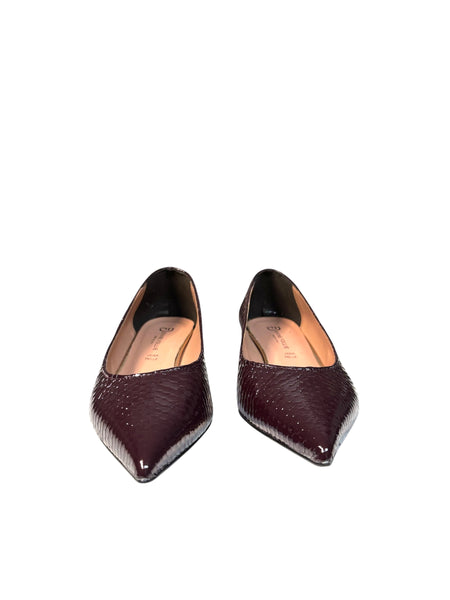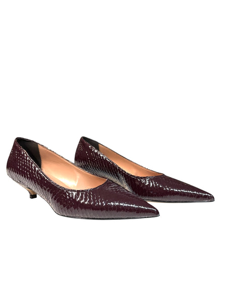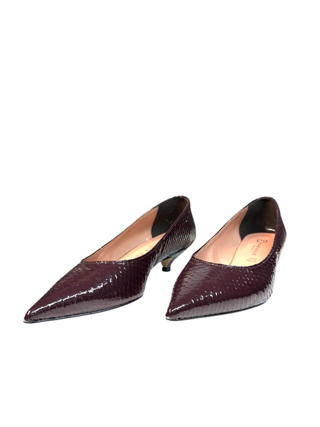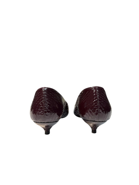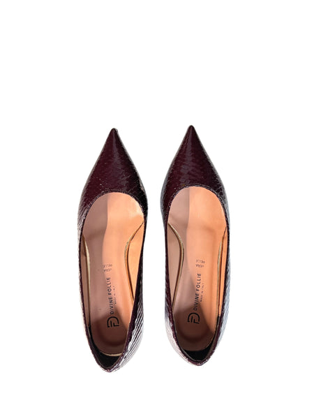Dècolletè in pelle stampa pitone colore bordeaux, tacco 2cm.