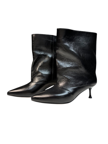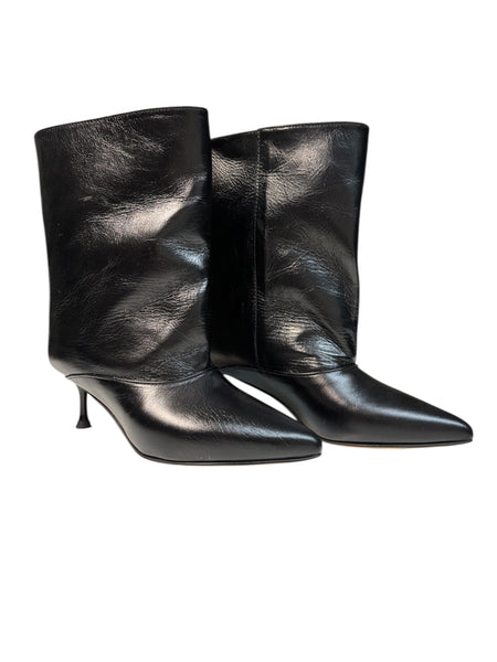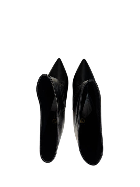 Stivaletto in pelle nera con tacco 4cm e dettaglio del gambale ampio.