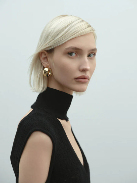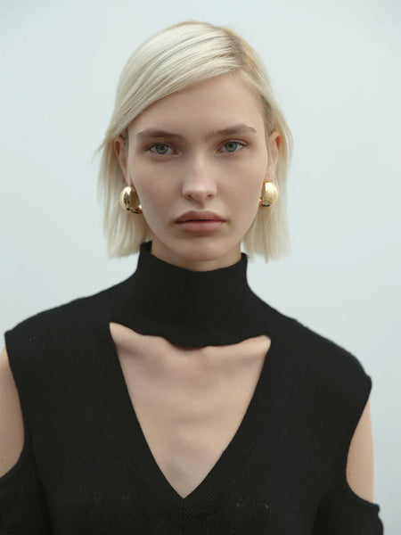 Abito dolcevita con scollo profondo in maglia in pizzo