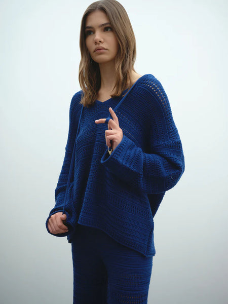 Maglia scollo V con cappuccio in punto uncinetto