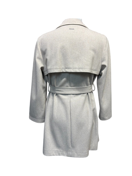 Cappotto doppio petto con cinta in vita e manica raglan